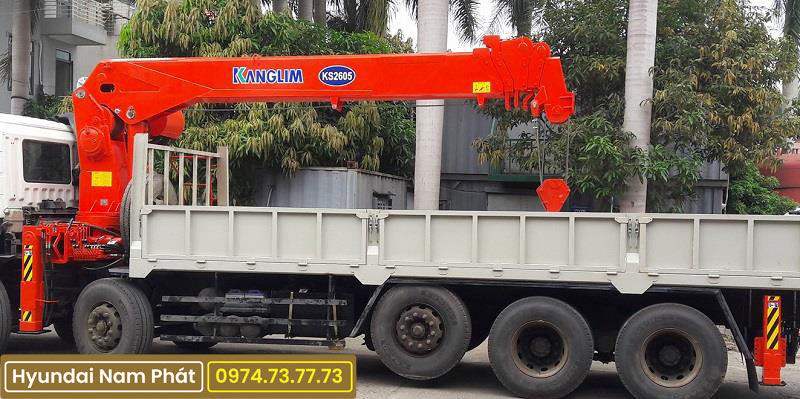 Xe tải Hyundai HD320 gắn cẩu 10 tấn KS2605 đem lại cho người dùng những lợi ích như bốc dỡ hàng hóa nhanh chóng gọn nhẹ lại rất an toàn nhất là đối với những mặt hàng dễ vỡ hay quá khổ quá tải. Ngoài ra xe cũng cho phép thực hiện công việc khác nhau với sự linh hoạt có thể di chuyển bất chấp địa hình.